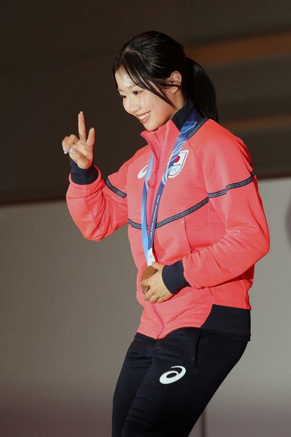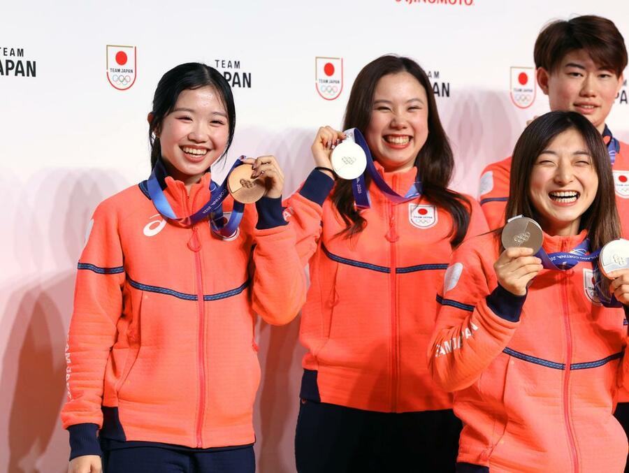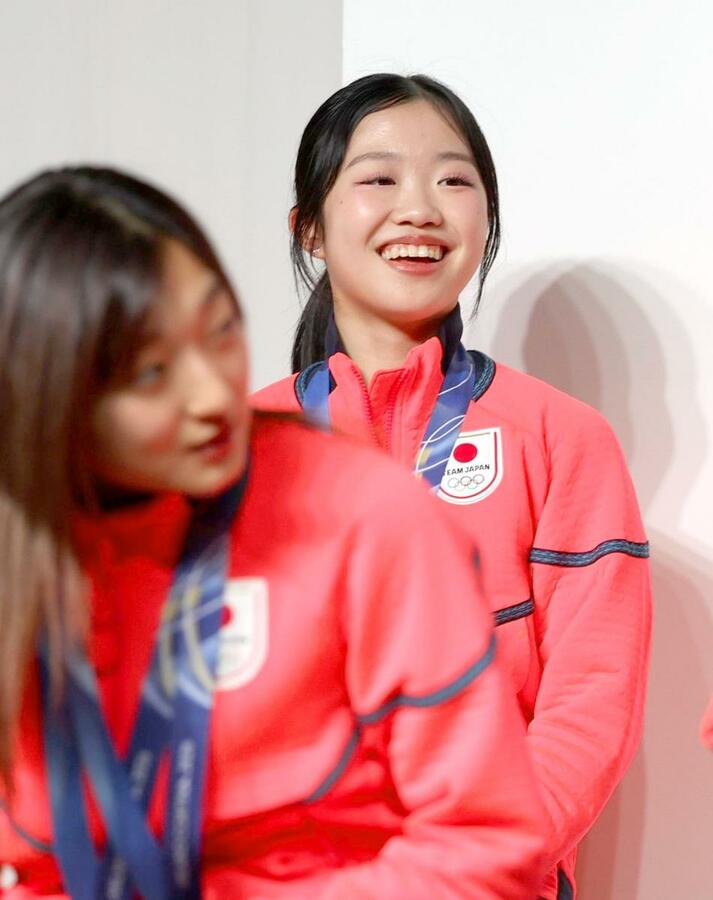 ミラノ・コルティナ冬季五輪の日本選手団が24日、帰国して都内のホテルで会見した。フィギュアスケート女子の銅メダリスト、中井亜美選手(17)=TOKIOインカラミ・新潟市出身=も出席し、「今メダルをかけていられることをうれしく思う。この場に立っているのも皆さんの応援のおかげ。4年後も出場できるよう頑張りたい」と明るく話した。