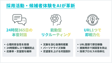本サービスは、面接官には聞きづらい求職者の本音を引き出し、機会損失の未然防止やミスマッチによる退職コストの削減といった経営直結の課題解決に貢献します。