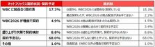 「WBCに関係なく契約済」が17.3%、「WBC2026が理由で契約」が4.9%の結果となりました。浮遊層である「盛り上がり次第で契約検討」が8.8%であることから、現状では4.9%+8.8%=13.7%が「WBC2026による新規契約」の最大値として見込まれます。ただし盛り上がりが不十分な場合には4.9%留まりの可能性もあり、逆に大いに盛り上がった場合には「契約予定なし」の回答者が翻意し、13.7%を上回る可能性もあります。