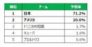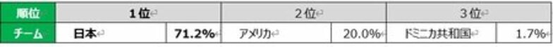 8割超えは前回大会で決勝を戦ったPOOL B(ヒューストンプール)のアメリカと、POOL C(東京プール)の日本でした。POOL A(サンファンプール)は夏季オリンピックで3度の金メダルを誇る伝統国キューバ、POOL D(マイアミプール)はWBC2013の優勝国でもあるドミニカ共和国がそれぞれ突破予想の1位でした。