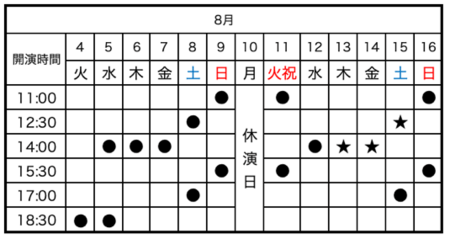 ★:日本公演950回達成記念「プレミアム公演(キャストによるトークショー、来場者全員に“日本公演950回達成記念ステッカー”をプレゼントなど。詳細は後日発表。)