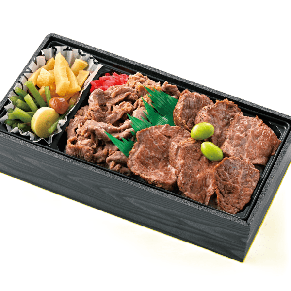 厳しい基準をクリアした宮崎県産の牛肉だけが名乗れる「宮崎牛」。2種の味わいの赤身を豪快に乗せた弁当です。