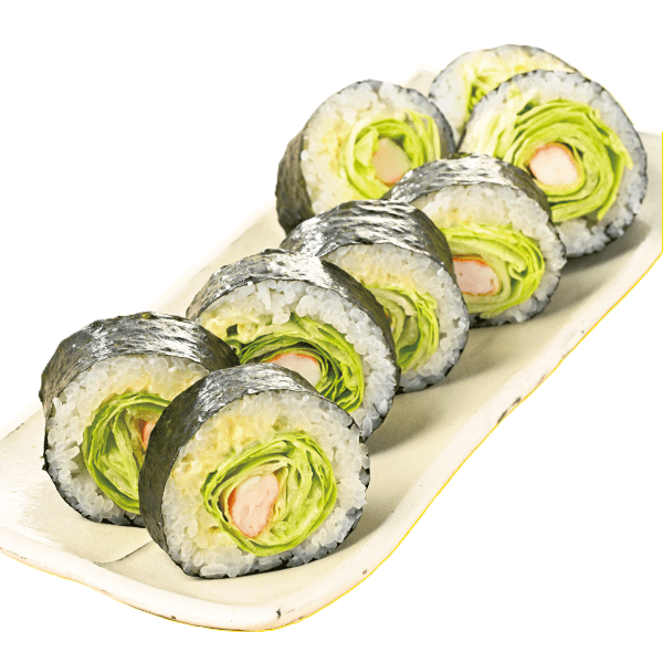 レタス巻は地元で愛される宮崎名物。レタスをぎっしりと入れ、ボイルしたエビ、甘めのシャリを、風味豊かな有明海産の海苔で巻き上げました。