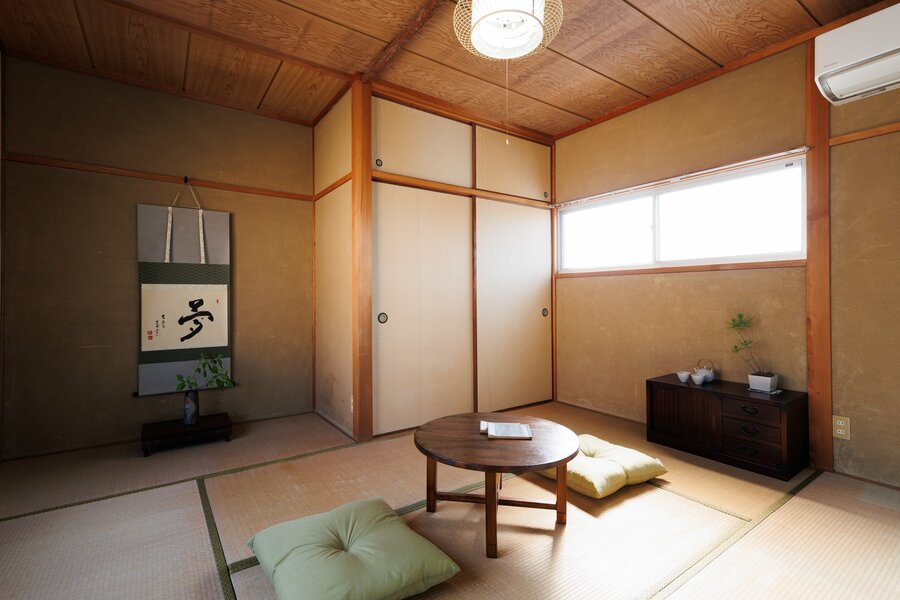 「むかしの家」として、リノベ前のそのままの状態で残した2階の和室。50年ほど前の建物なので、壁は土壁、窓も一枚ガラス。断熱性の違いを実際に体感でき、家の歴史を情緒的に感じられる場所でもある。