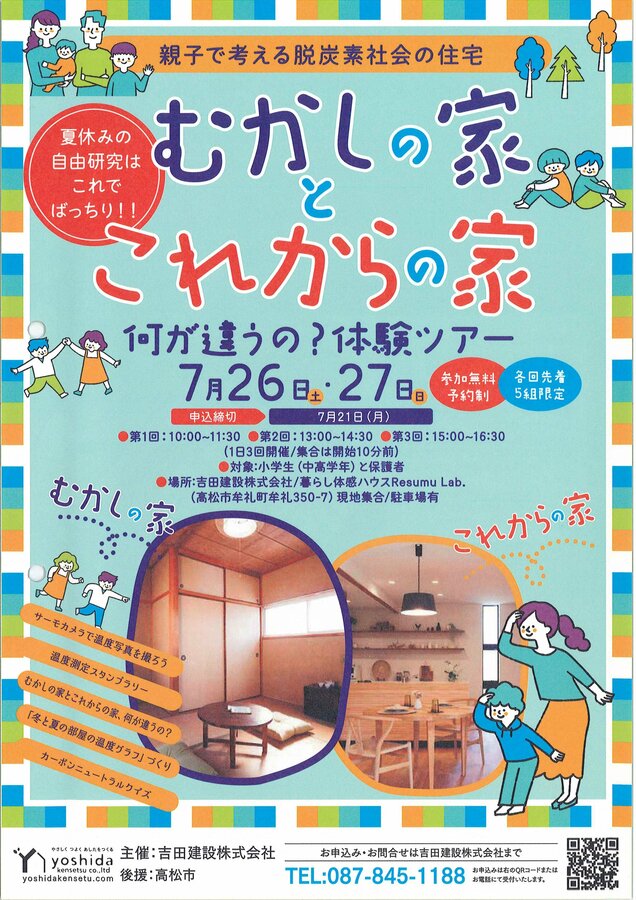 そして何より特筆すべきは、匠のアイデアと行動力による、地域の子どもたちを対象としたイベントの開催にある。それは先述の昔のままの部屋を利用した「むかしの家とこれからの家、何が違うの?体験ツアー」と題した夏休み自由研究向けの企画だ。未来を担う子どもたちに、脱炭素社会に向けた住宅の取り組みをモデルハウスで体験してもらい自由研究にまとめてもらおうという趣旨で、市のゼロカーボン推進課に企画を持ち込んだところ協力してもらえることになり、各小学校に募集チラシを配布してくれたそうだ。その結果、30名の小学生とその親御さんたちが参加され、しかもイベント後に子どもたちのレポートコンテストまで実施したのだとか。こうした取り組みは、親御さんの学びにもなり、口コミによる波及効果につながっていく。地域に貢献するビルダーとしての理想的な姿ではないだろうか。