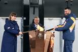 記者会見で朝鮮半島有事を想定した合同演習の実施を発表する米韓両軍の関係者=25日、ソウル(共同)