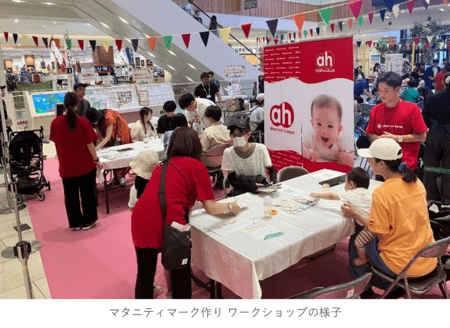 本イベントでは、使用後の哺乳器に関するご家族の悩みやリサイクルの課題が説明されました。また、実際に哺乳器を使用していたご家族へ「卒乳証書」の授与や、回収した哺乳器パーツの一部を原料として活用したマタニティマーク作りのワークショップが行われ、ご来場いただいたプレママ・プレパパにオリジナルのマタニティマークづくりを体験していただきました。