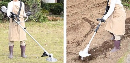 用途に応じて先端アタッチメントを付け替えることで、耕うん、草刈りなど、庭のさまざまな作業に対応。複数の機器を使い分ける必要がなく、省スペースで効率的な庭仕事が可能になります。