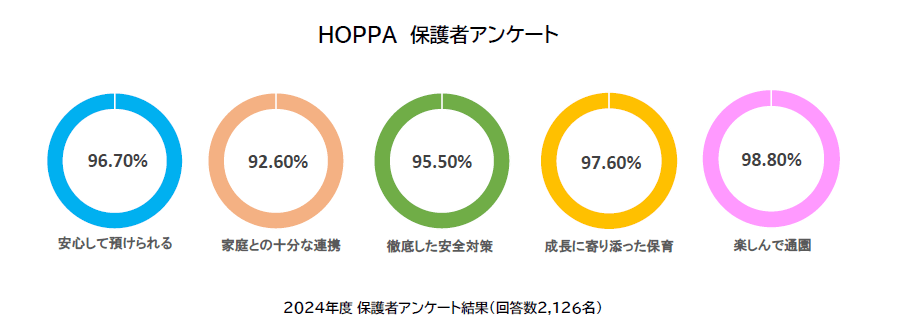 HOPPAではこれまでも、保育の質の向上と保護者とのコミュニケーション品質向上に同時に取り組んできました。例として、2024年度から利用機能を拡大した保育・教育施設向けICTサービス「CoDMON(コドモン)」の活用、オムツの無料配布やお昼寝用布団のレンタル利用などによる保護者の負担軽減など、園とご家庭双方から子どもたちの成長を支えることにより注力できるよう図っています。