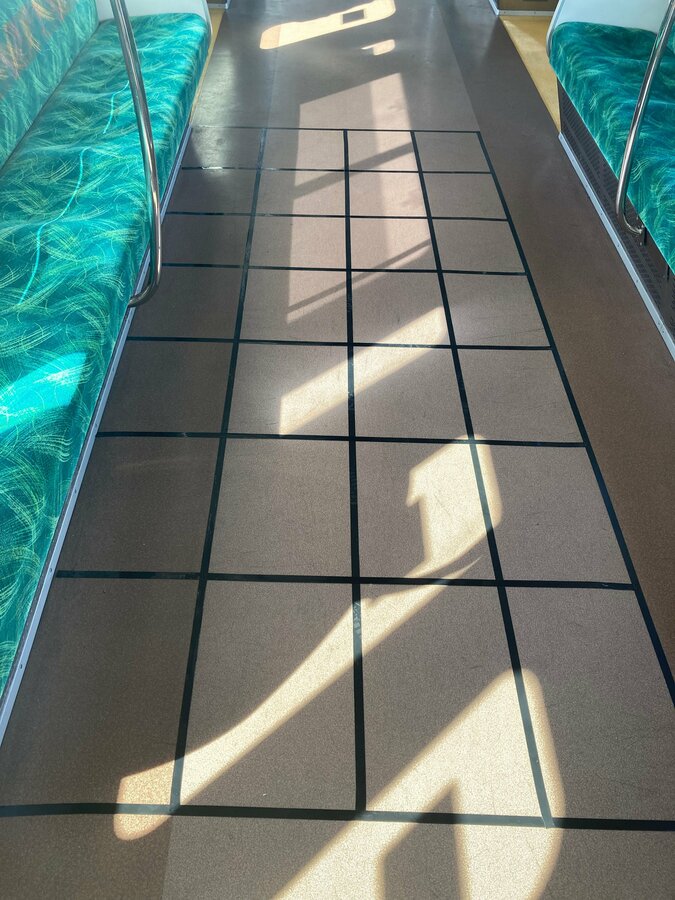 ・VVVFインバータ制御装置搭載車両の1両の床にビニールシートを敷き、直接耳を当てて制御装置直上およびモーター音を聞くことができるスペースを提供します。