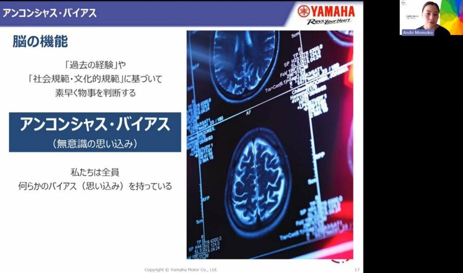 例えば今年2月にオンラインで行った「新任部長職研修」では、部長としての判断や意思決定とDE&Iを絡め、管理職のアンコンシャス・バイアス(無意識の偏見)が与える組織への影響などをテーマに安藤さんがレクチャー。管理職の評価・育成のあり方が社員のパフォーマンスやモチベーションも左右することを伝えました。その他、外国籍社員同士の交流会、男性更年期セミナーなども開催。多様な視点から、仕事や生活課題の解消につなげる取り組みを幅広く行っています。