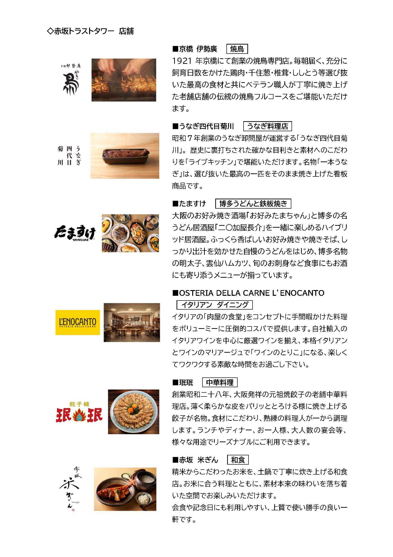今回の店舗構成については、ランチでの日常使いからフォーマルなビジネスシーンまで、利用する時間帯や目的が異なる人たちが、それぞれにとって使いやすい形で活用できるラインナップが実現いたしました。博多の有名うどん居酒屋「二○加屋長介(にわかやちょうすけ)」と大阪のお好み焼き酒場「お好みたまちゃん」のハイブリッド居酒屋や創業100年超えの焼き鳥専門店 伊勢廣など、多彩な店舗を通じ、赤坂の魅力向上と快適な日常の創出に努めてまいります。