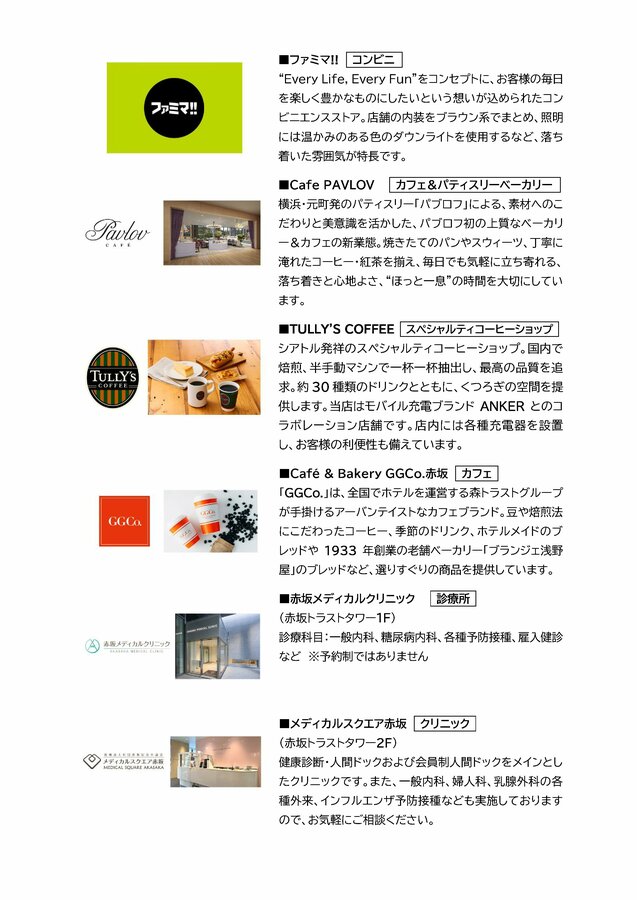 森トラスト株式会社は、大規模複合開発プロジェクト「東京ワールドゲート赤坂」において、新たなショップ&レストランがオープンすることをお知らせいたします。今回、4つの新業態を含む14店舗が加わることで、全18店舗の構成となります。