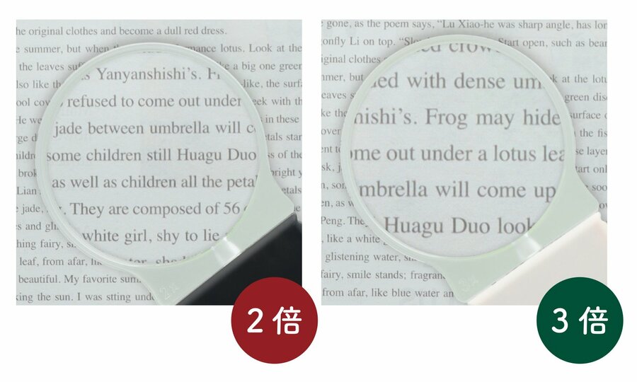 レンズは用途に応じて選べる2倍と3倍の2種類をラインアップ。使用シーンに合わせて、お好みの倍率をお選びいただけます。