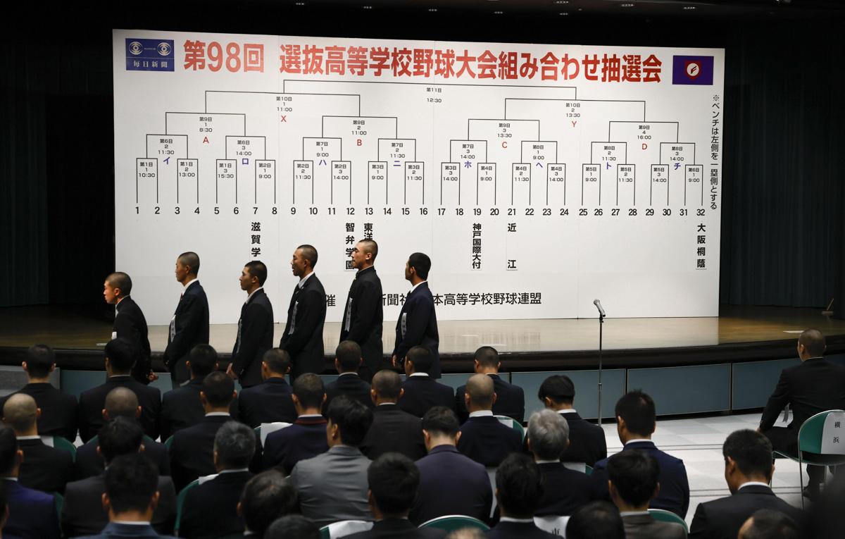 2連覇を狙う横浜(神奈川)は神村学園(鹿児島)、明治神宮大会を制した九州国際大付(福岡)は同準優勝の神戸国際大付(兵庫)とぶつかる。夏を含め甲子園大会9度優勝の大阪桐蔭は熊本工との1回戦。