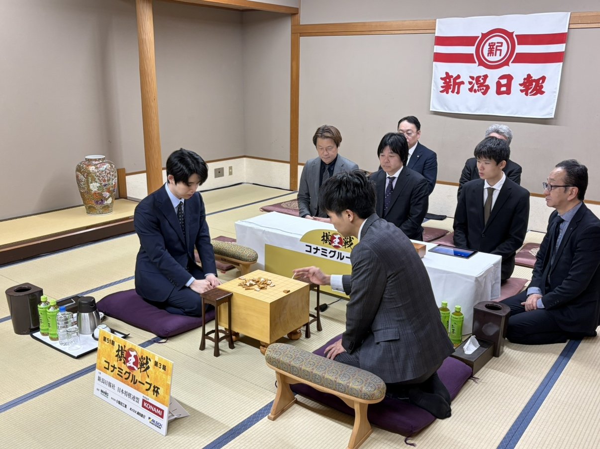 将棋の第51期棋王戦コナミグループ杯(新潟日報社など主催)5番勝負第3局が3月1日、新潟市中央区の新潟グランドホテルで行われます。藤井聡太棋王(23)=竜王・名人・王位・棋聖・王将との六冠=に増田康宏八段(28)が挑みます。ここまでは1勝1敗のタイ。勝った方がタイトルに王手をかける大一番となります!