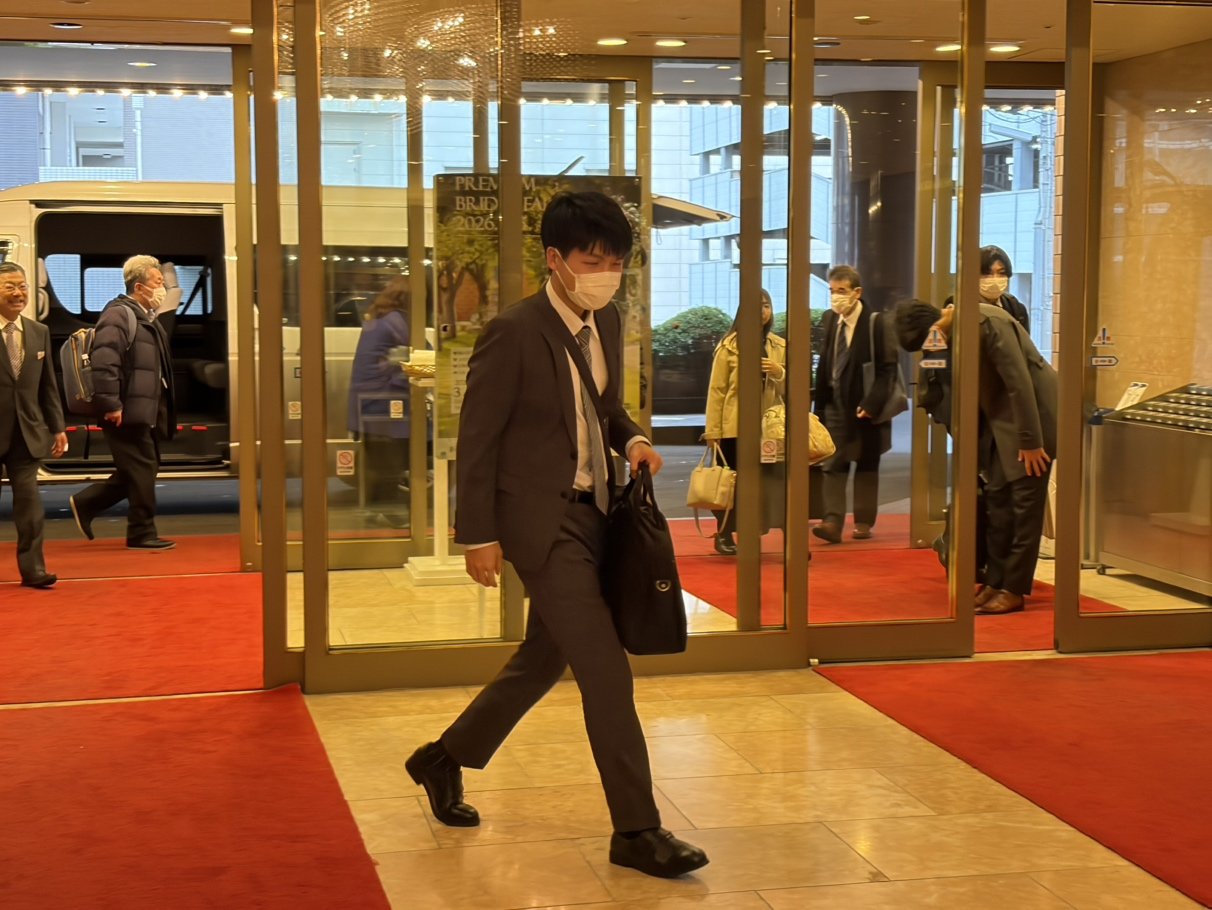 【午後3時すぎ】藤井聡太棋王と増田康宏八段が対局会場の新潟グランドホテルに到着しました。この後、関係者打ち合わせ→検分となります。