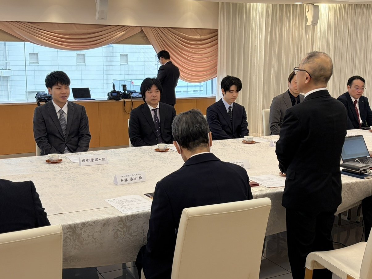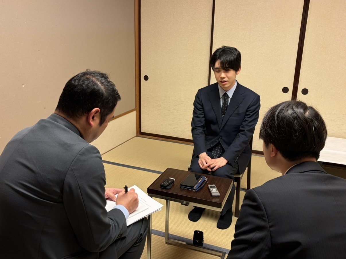 【午後4時半すぎ】新潟日報社のインタビューに応じる藤井聡太棋王と増田康宏八段です。