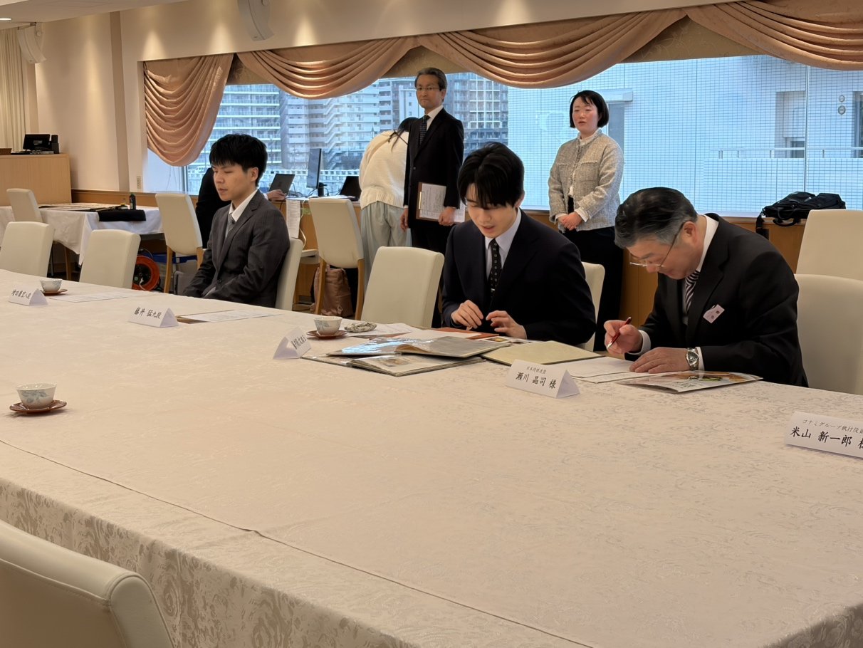 【午後4時前】関係者打ち合わせが開かれています。藤井聡太棋王と増田康宏八段も出席しています。この後、あすの「おやつ」「勝負飯」を選び、検分を行います。