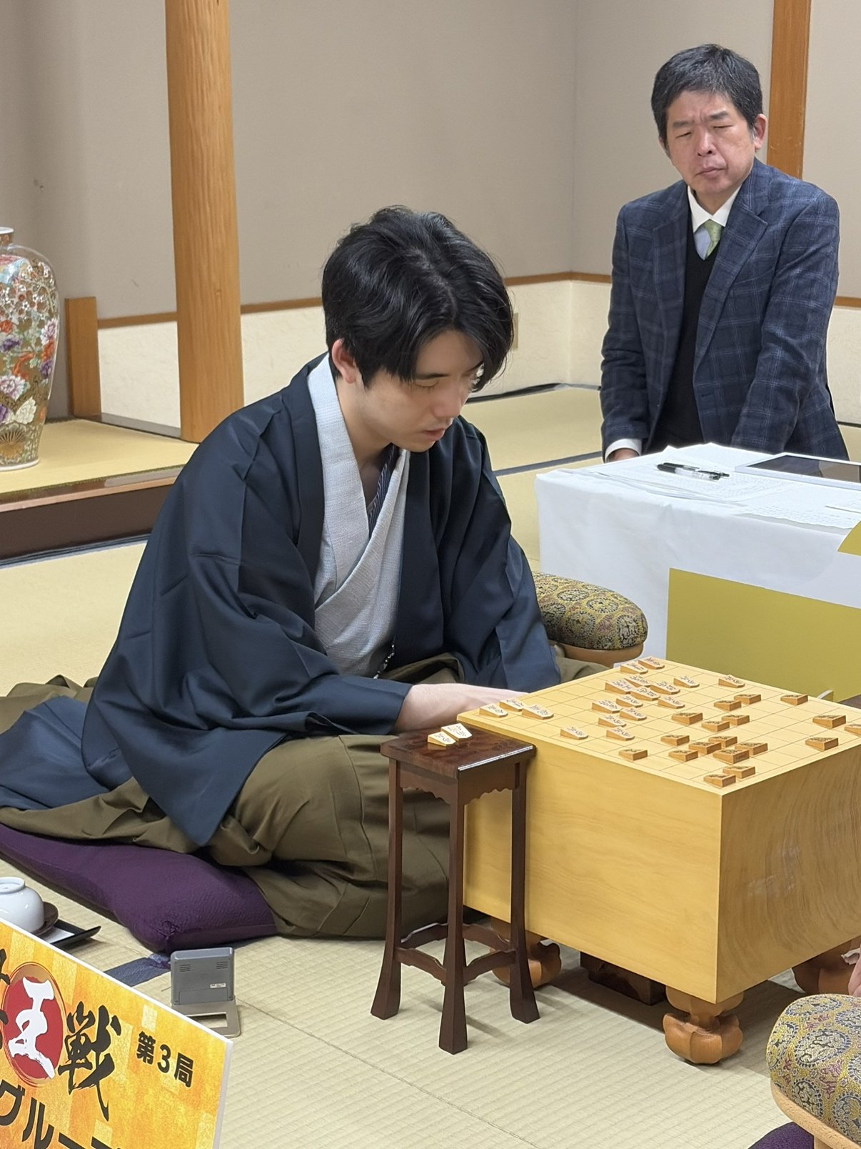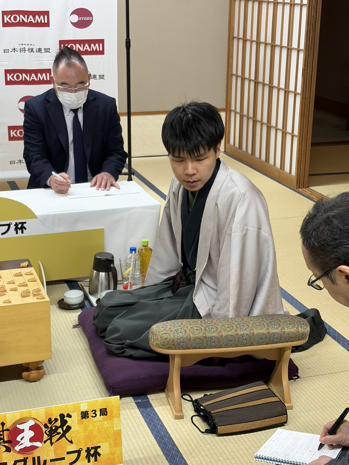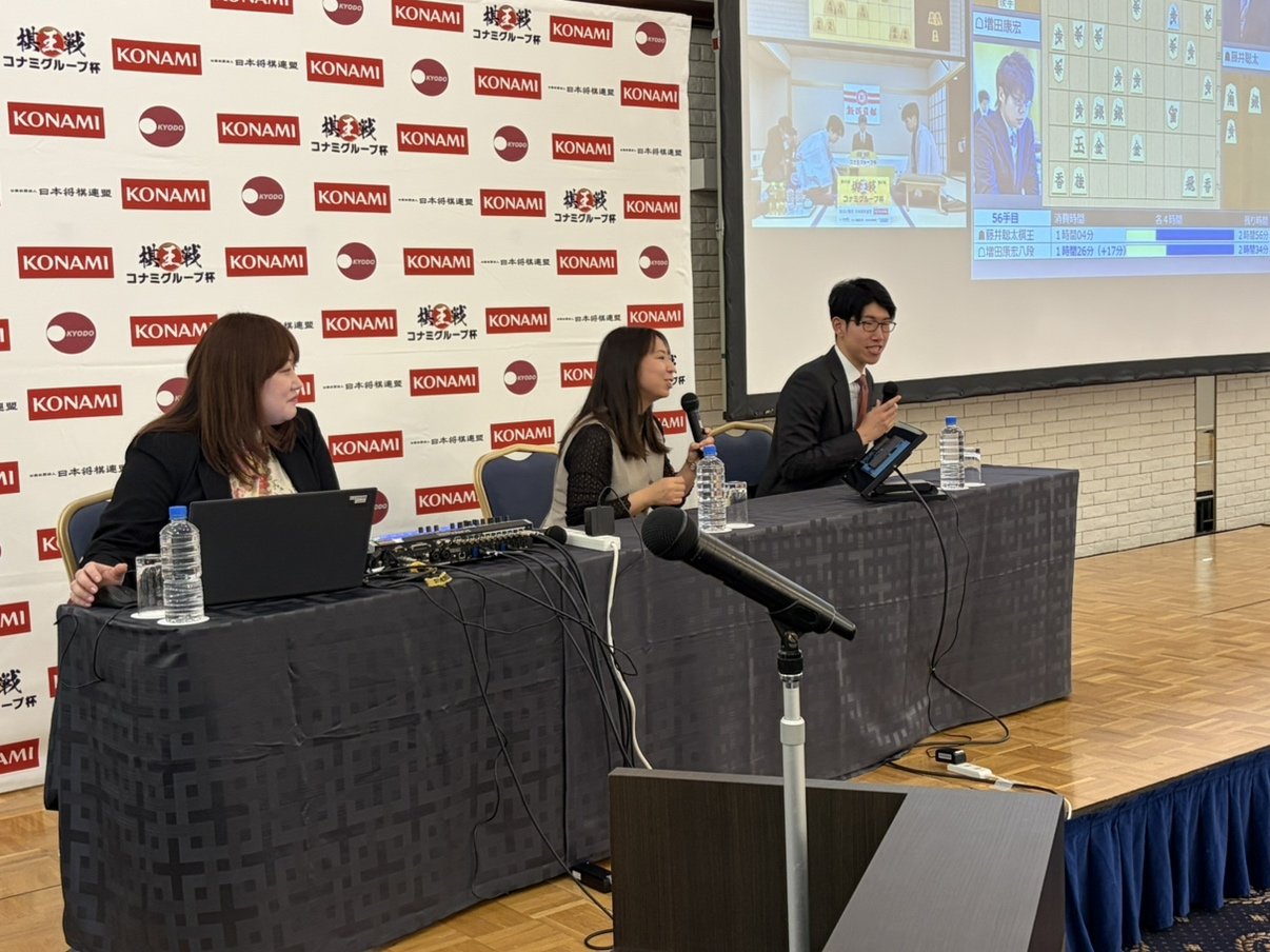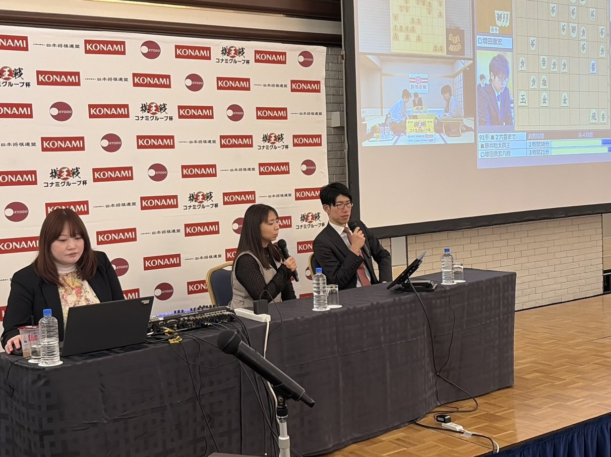 【午後2時前】本田女流四段「先日、棋聖戦の就位式で花束贈呈をしたんですけど、藤井棋王を近くで見て青年、大人になったなあと感じました。おばちゃん的ですけど。みなさんも長年見ているから分かると思いますが、笑顔の作り方も上手になって。その土地土地のことをお話しされてますし、弱点がさらになくなってきてますよね」