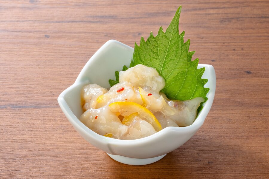 一晩じっくり時間をかけて仕上げ、旨みが凝縮された『ふぐの一夜干し』590円(税込649円)と、日本酒との相性が良く、柚子の香りがアクセントとなる『ふぐの塩辛』490円(税込539円)を、季節限定メニューとしてご用意しています。
