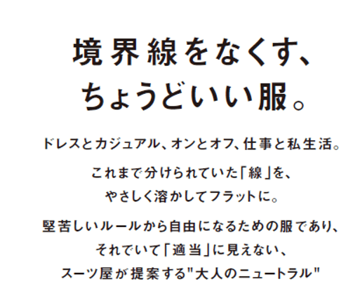 ~仕事と私生活(プライベート)の境界線をなくす“ちょうどいい服”を提案~