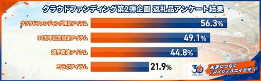 サポーターの皆様と「ともにつくり上げる30周年企画」の第2弾企画として、ご支援の感謝の気持ち・共創の証となる返礼品のアンケートを実施いたしました。今回のアンケートには第1弾を超える延べ1092名の方にご回答いただきました。どの選択肢も一定数以上のご要望を頂きましたが、特に関心の高かった「クラウドファンディング限定アイテム」を始めとした返礼品をご用意いたしました。アンケートにご協力いただき誠にありがとうございました。