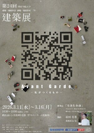 関東学院大学(本部:横浜市金沢区 学長:小山嚴也)は、3月11日(水)~16日(月)に第24回建築展「Avant Garde -私がつくるもの-」を開催します。