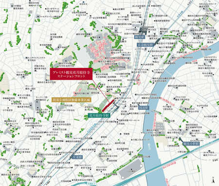 「プレミスト鶴見花月総持寺ステーションフロント」は、住宅と防災公園を一体的に整備する街区計画により、安心と緑豊かな住環境を提供します。