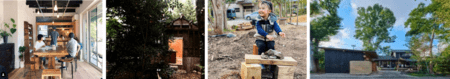台の森:住宅街に長年放置されてきた屋敷林の有効活用により多世代が過ごせる地域の居場所づくりを目的とした提案。敷地内の樹齢300年ほどの木々や、そこでの家族の記憶も歴史的資源と捉え、障がい者グループホームとカフェ、ギャラリーが共存する。(宮城県仙台市)