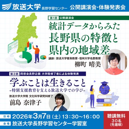 放送大学長野学習センターで公開講演会・体験発表会 3/7(土)