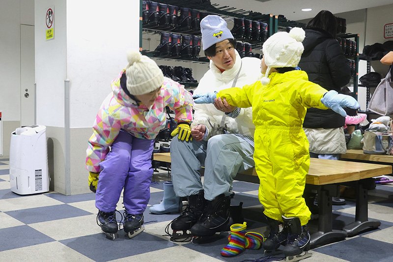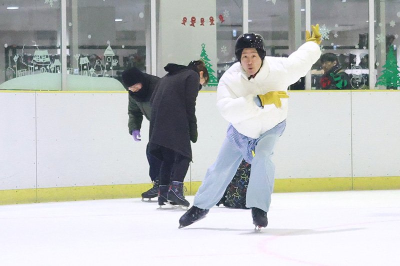 春は今回が人生で2回目のスケートだけど、僕と丸は初スケート。スケート靴に履き替え、準備運動をしたら「では、僕が教えてあげましょう」と、春が先導してリンクへ。