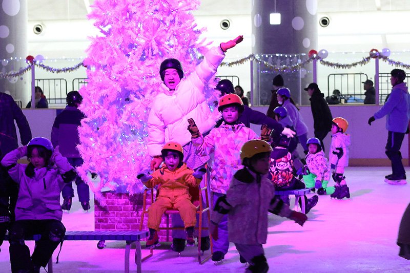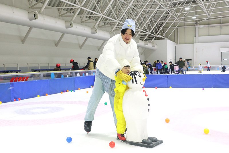 「そりが楽しかった! また来たい」と丸が言う通り、こちらのスケートリンクはまだ立って滑れない小さな子どもでも十分楽しめました。