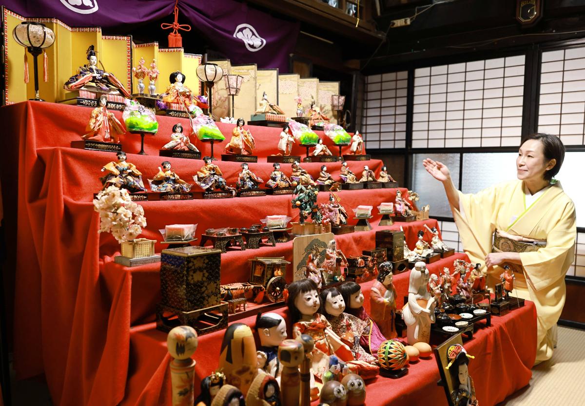 城下町村上に春を告げる「町屋の人形さま巡り」が、村上市中心部の旧町人町一帯で開かれている。町屋や商店計60軒を会場に、ひな人形や土人形、武者人形など合わせて約4千体を展示。各家庭が大切に受け継いできた人形と建物の歴史を伝えている。