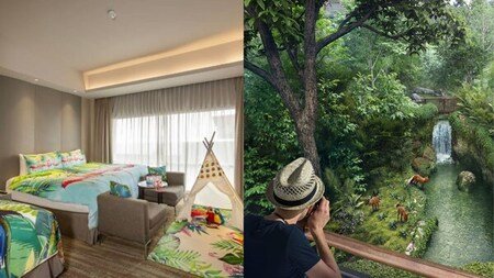レインフォレスト・アドベンチャーの客室パッケージ(Rainforest Adventure Room Package)は、手間のかからない旅行と有意義な共通体験を求めるご家族のために企画され、ホテル滞在を旅の一部に変えます。お客様は特別にデザインされた野生生物をテーマにしたファミリールームで滞在し、遊び心あふれる熱帯雨林の装飾が施され、キングサイズベッド1台とシングルベッド1台があり、入室時にお子様の冒険家がワクワクする臨場感あふれる環境を演出します。