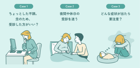 妊娠中の体調不安は、夜間・休日など、いつ起こるかわかりません。また、動くことが難しい時期も多く、受診の判断を迷う場面が多々あります。