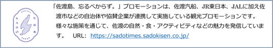 また、佐渡の魅力を発信するWEBメディア「さどタイムス」では、見どころや旅の楽しみ方を紹介。佐渡汽船公式HPでは、乗船と宿泊がセットになった旅行商品「佐渡時間」や、気軽に楽しめる日帰り商品も販売しております。