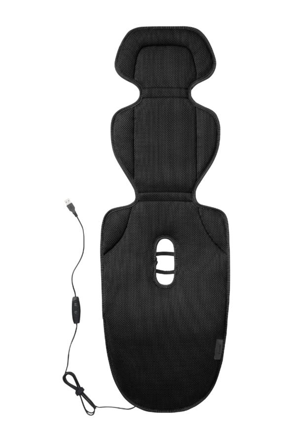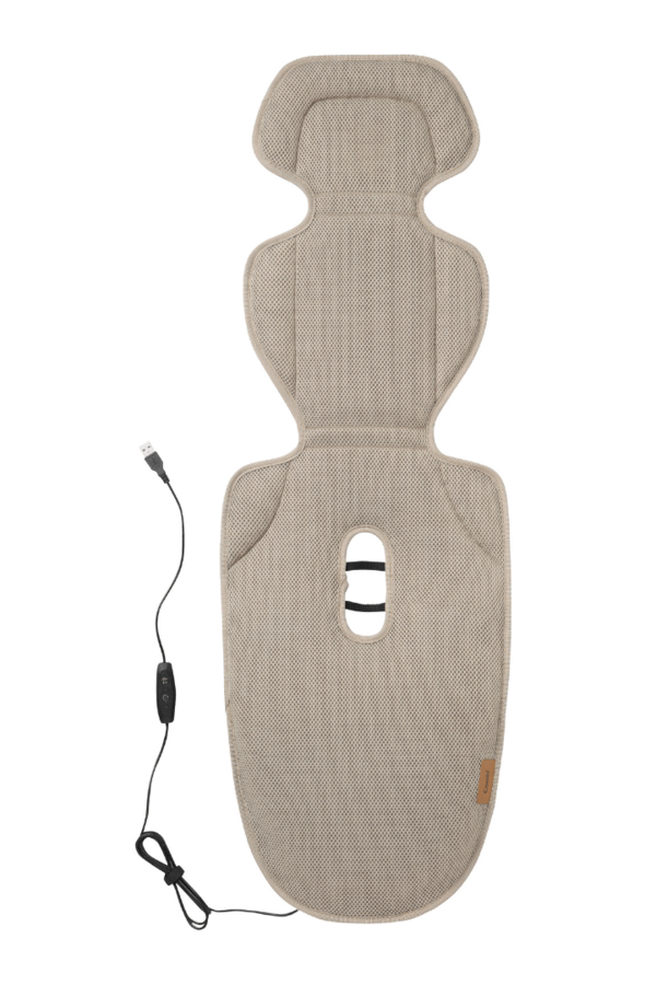 外気を取り込んでシート内部へ行き渡らせる「Wエアダクト構造」により、赤ちゃんの背中やお尻の下にこもりやすい熱を軽減する設計です。回転するダクトが、シートが折れ曲がっても風の通り道をしっかり確保し、頭の先まで風を届けます。さらにメッシュ素材のシート内部には、通気性に優れた立体ファイバー構造のクッションを採用。風を通しやすく、座り心地も快適です。