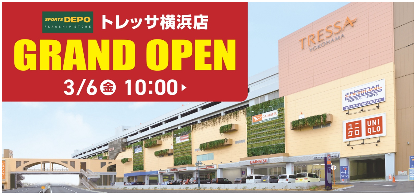 スポーツ用品販売の株式会社アルペン(本社:愛知県名古屋市、代表取締役社長:水野敦之)は、スポーツデポの全国7店舗目となるフラッグシップストア「スポーツデポフラッグシップストアトレッサ横浜店」を3月6日(金)にトレッサ横浜内にオープンいたします。