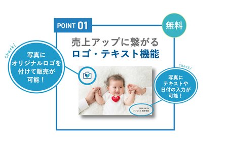 写真内にオリジナルロゴやテキストを付けて販売可能な機能