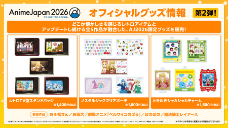 この度AnimeJapan 2026のオフィシャルグッズ第2弾ラインナップが公開!「おそ松さん」、「お茶犬」、劇場アニメ『ベルサイユのばら』、「ぼのぼの」、「魔法騎士レイアース」といった大人気アニメ5作品の限定グッズが公開!