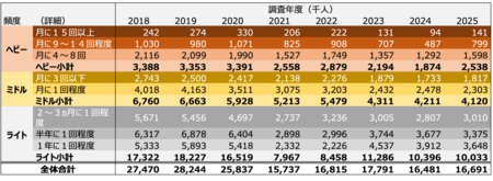 直近、2024-25年度のサウナ愛好家人口の動向を図表2にまとめた。