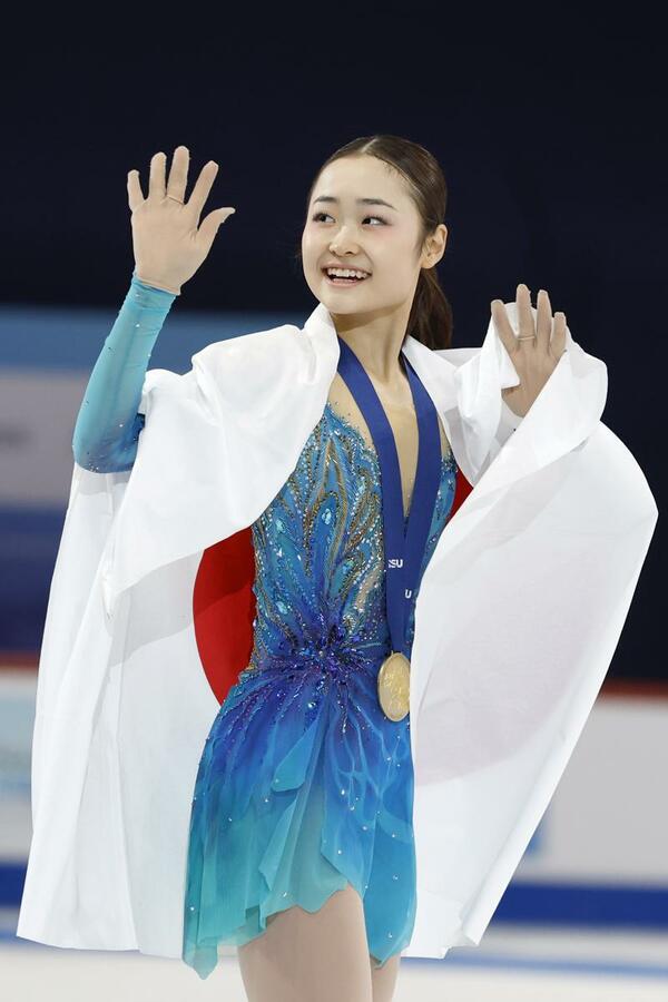 【タリン共同】フィギュアスケート女子で愛知・中京大中京高2年の島田麻央(17)=木下グループ=が7日、エストニアの首都タリンでの世界ジュニア選手権で全種目通じて史上初の4連覇を達成した。首位に立った5日のショートプログラム(SP)後に発熱。一時は棄権も考えたフリーで大技トリプルアクセル(3回転半ジャンプ)を決めて逃げ切った。