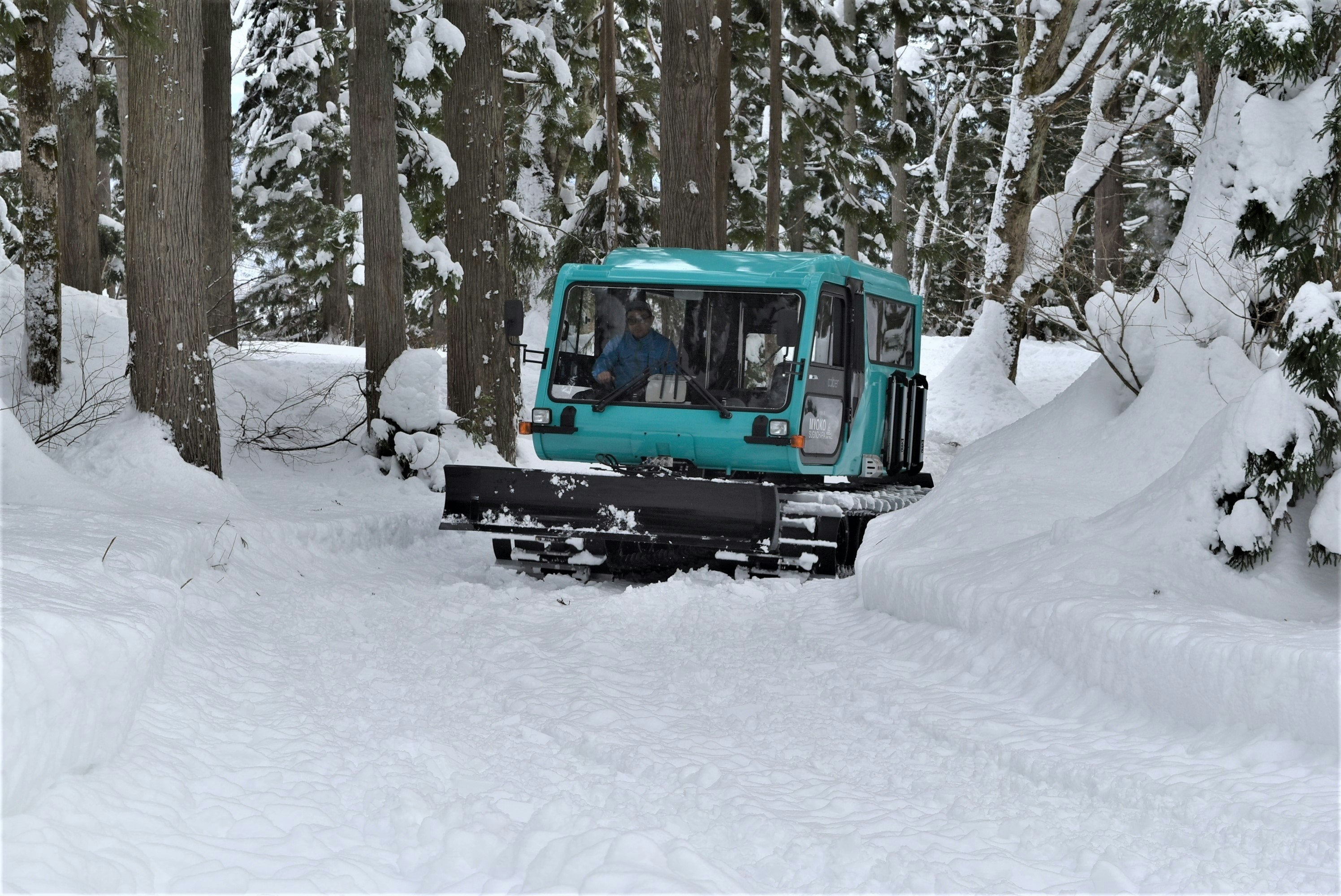 林の中を進む雪上車
