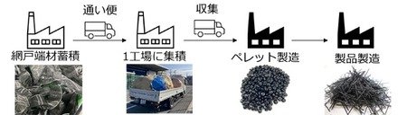 そこで4社は、引張強度に優れた網戸端材(廃プラスチック)と製糸性(※4)に優れた再生材料、バルチップのバージン材料(※5)を独自の配合で混ぜ合わせることにより、従来のコンクリート補強用PP短繊維と同程度の引張強度と製糸性を実現した「アミチップ」を開発しました。