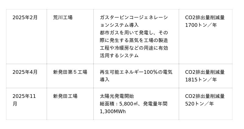 自然冷媒機器への更新により、温室効果ガス排出量は従来比で約40%削減できる見込みであり、電力使用量の削減も期待されています。今回の更新によって、荒川工場の主要冷蔵機器はすべて自然冷媒機器へと移行しました。当社は今後、新規導入する主要冷蔵機器の100%自然冷媒化を方針として掲げ、環境負荷の低減と持続可能な生産体制の構築を進めてまいります。最新の省エネ設備を最大限に活かし、地域社会とともに持続可能な未来を目指す企業として、引き続き脱炭素化への取り組みを推進してまいります。