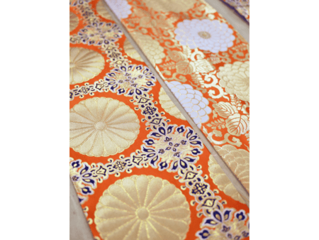 金糸や銀糸で模様を織り出している。化粧まわし(前垂れ)の裏側に縫い付けられているため、力士が化粧まわしを締めている状態では見えません。菊の刺繍、金の輝きが豪華で美しいものとなっています。