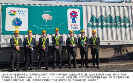 この度は大阪・関西万博からGREEN×EXPO 2027へと「緑」を受け継ぐ役割を担わせていただき、誠にありがたく存じます。CO₂排出量の少ない鉄道輸送は、環境負荷の低減に貢献する持続可能な輸送手段です。JR貨物グループは鉄道輸送が持つ環境特性を最大限に活かし、2050年カーボンニュートラルをはじめとするグリーン社会の実現に向けて環境先進企業を目指します。今回の輸送が持続可能な社会の実現に向けた一歩となり、皆さまの心に根づくことを願っています。