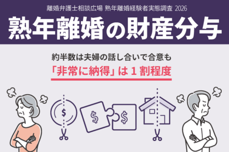 今回の調査から、熟年離婚における財産分与は、法的解決に進めることなく夫婦間の直接の話し合いで条件を決めるケースが半数近くである一方、その結果として十分納得行く財産分与を行えるケースは決して多くない実態が見えてきました。