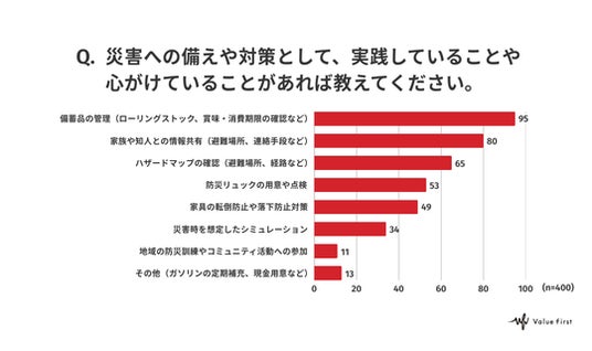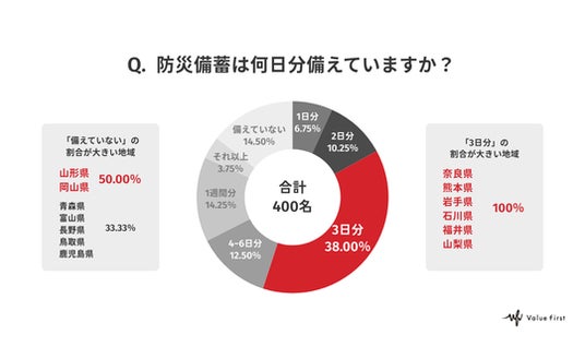 デジタルマーケティングの株式会社バリューファースト(本社:神奈川県横浜市、代表取締役:佐野 聡士、以下バリューファースト)が運営する「みんなの声研究Lab」では20代以上の男女400名を対象に「防災意識と防災グッズ」に関するアンケートを実施しました。
